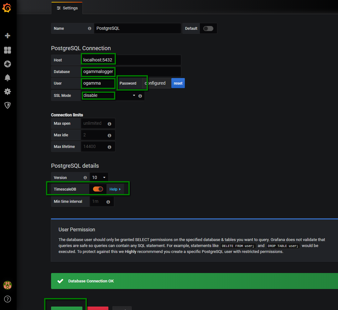 It is possible also to read already logged data values from PostgreSQL database, using PostgreSQL data source plugin for Grafana (installation is not required, included into Grafana by default):