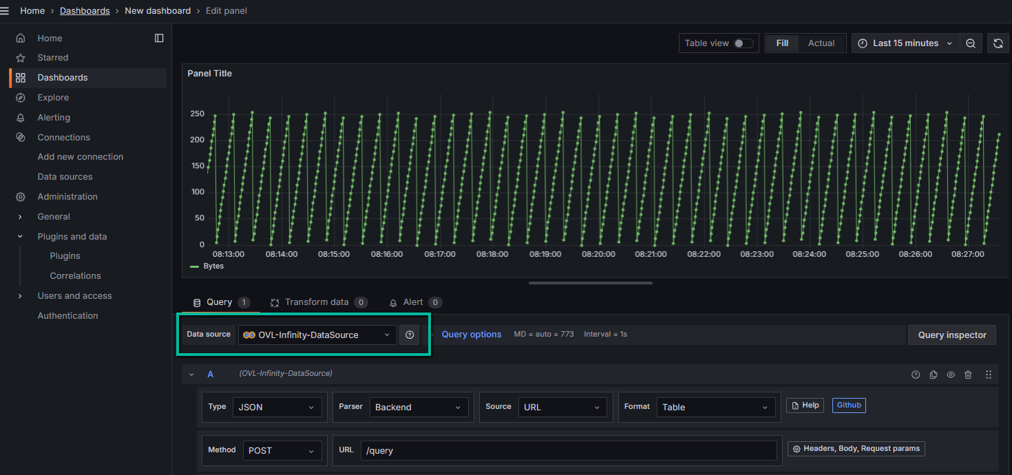 Add data source panel, enter name of the pluginInfinity.Click on the found plugin