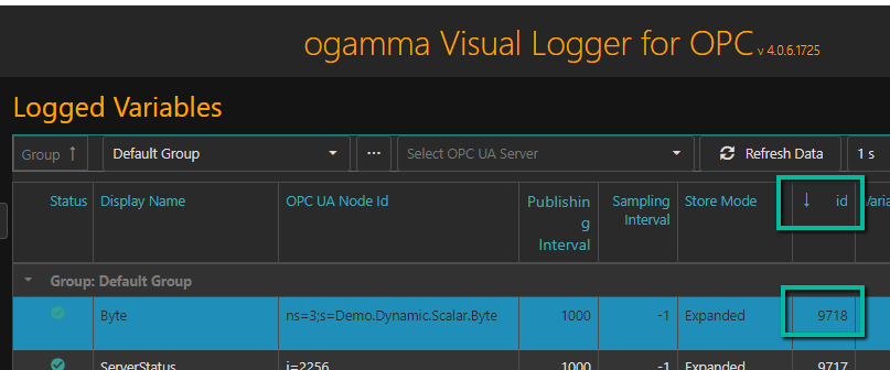 ReadOPC UA service call. Applicable when the option in theRead Typecolumn of theLogged Variablestable for the variable is set toRead.using